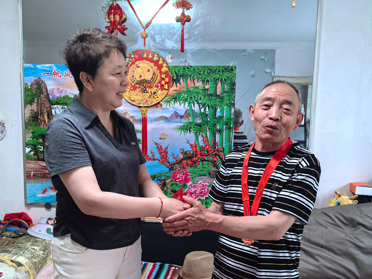 慰問中,王東平鄭重地為兩位老黨員佩戴紀(jì)念章,與他們共同見證這一光榮時(shí)刻,代表公司黨委向他們表示祝賀,并與他們促膝交談。二一七地質(zhì)隊(duì)原黨委書記、隊(duì)長(zhǎng)熊忠緊緊握著紀(jì)念章,語重心長(zhǎng)地說:“這枚紀(jì)念章,不僅僅是一份榮譽(yù),更是一份沉甸甸的責(zé)任!作為一名黨員,要始終不忘初心、牢記使命,關(guān)注公司各項(xiàng)工作發(fā)展,為黨的地質(zhì)事業(yè)發(fā)揮余熱。”老黨員仝亮回憶起往昔歲月,激情滿懷,他用樸實(shí)的話語,分享了自己投身地質(zhì)、扎根野外的難忘經(jīng)歷,表達(dá)了對(duì)地質(zhì)工作的無限忠誠(chéng)和熱愛,并感謝黨組織關(guān)懷和厚愛。王東平指出,老黨員是公司發(fā)展的親歷者和奠基人,以半生堅(jiān)守詮釋了“忠誠(chéng)”二字的厚重意義,這份榮譽(yù)實(shí)至名歸、當(dāng)之無愧。希望他們保重身體,持續(xù)關(guān)心和支持公司發(fā)展,積極建言獻(xiàn)策。